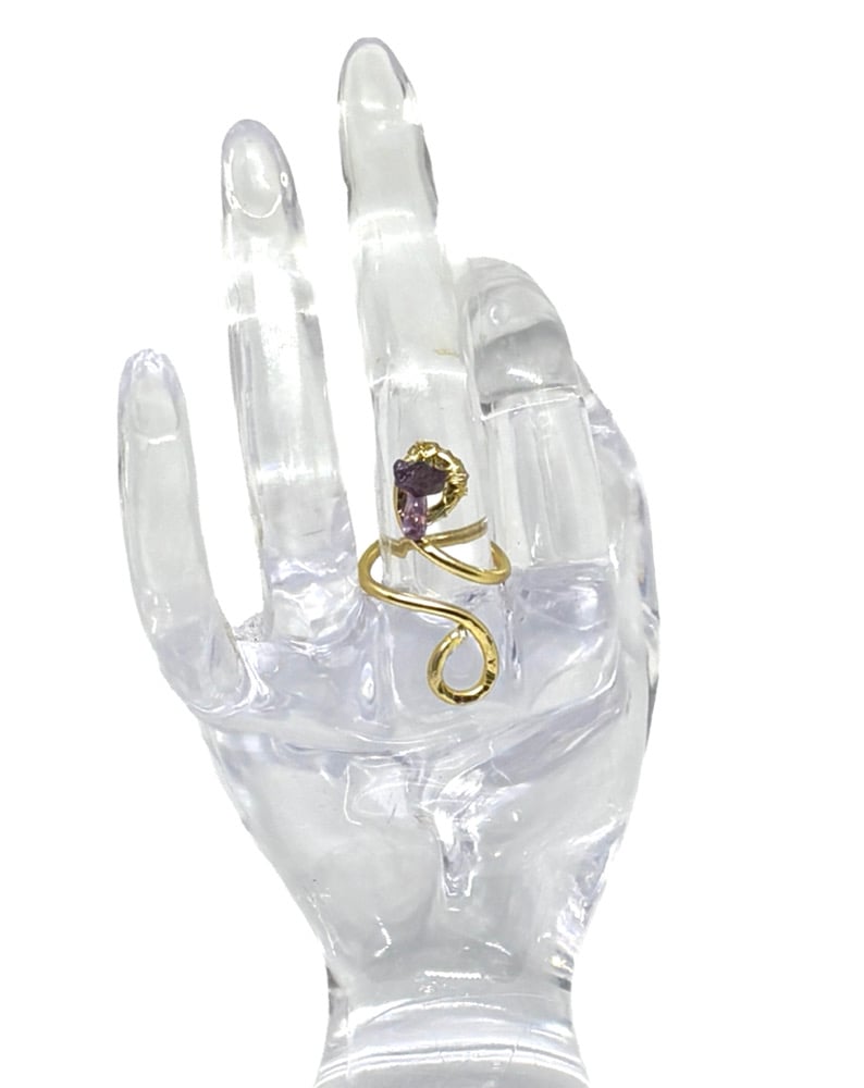 Bague ajustable fait mains avec 2mm de fil de cuivre,0.3mm et pierre en plastique.Pierre inspiré du l'améthyste symbolisant la bonne santé, l'humilité, la sincérité et la joie.