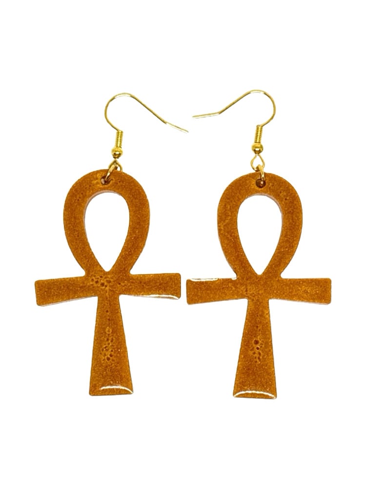 Boucles d’oreilles Ankh fait mains avec résine couleur cuivre.