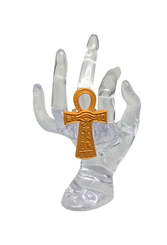 Bague faite main en résine marron, inspirée de la texture et de la symbolique du bois. Dans de nombreuses cultures africaines, le bois représente la force, la sagesse, la protection et la connexion avec les ancêtres. Associé au symbole sacré de l’Ankh, clé de vie en Égypte antique, ce bijou incarne à la fois la vitalité et l’enracinement.