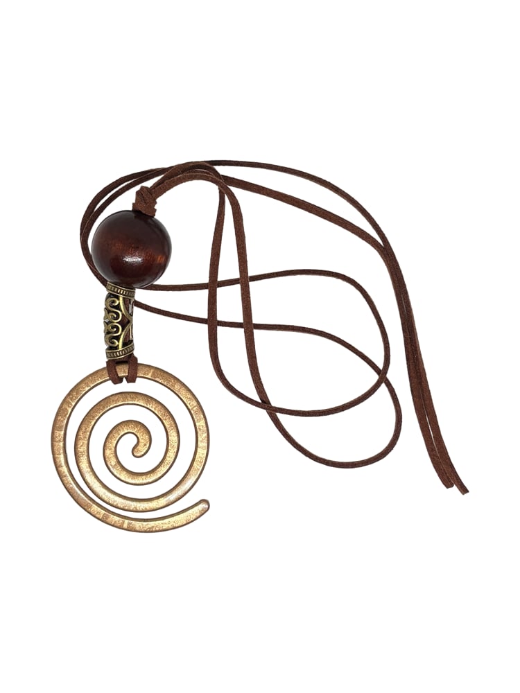 Collier fait mains avec fil en cordon résistant et pendentif spiral.
