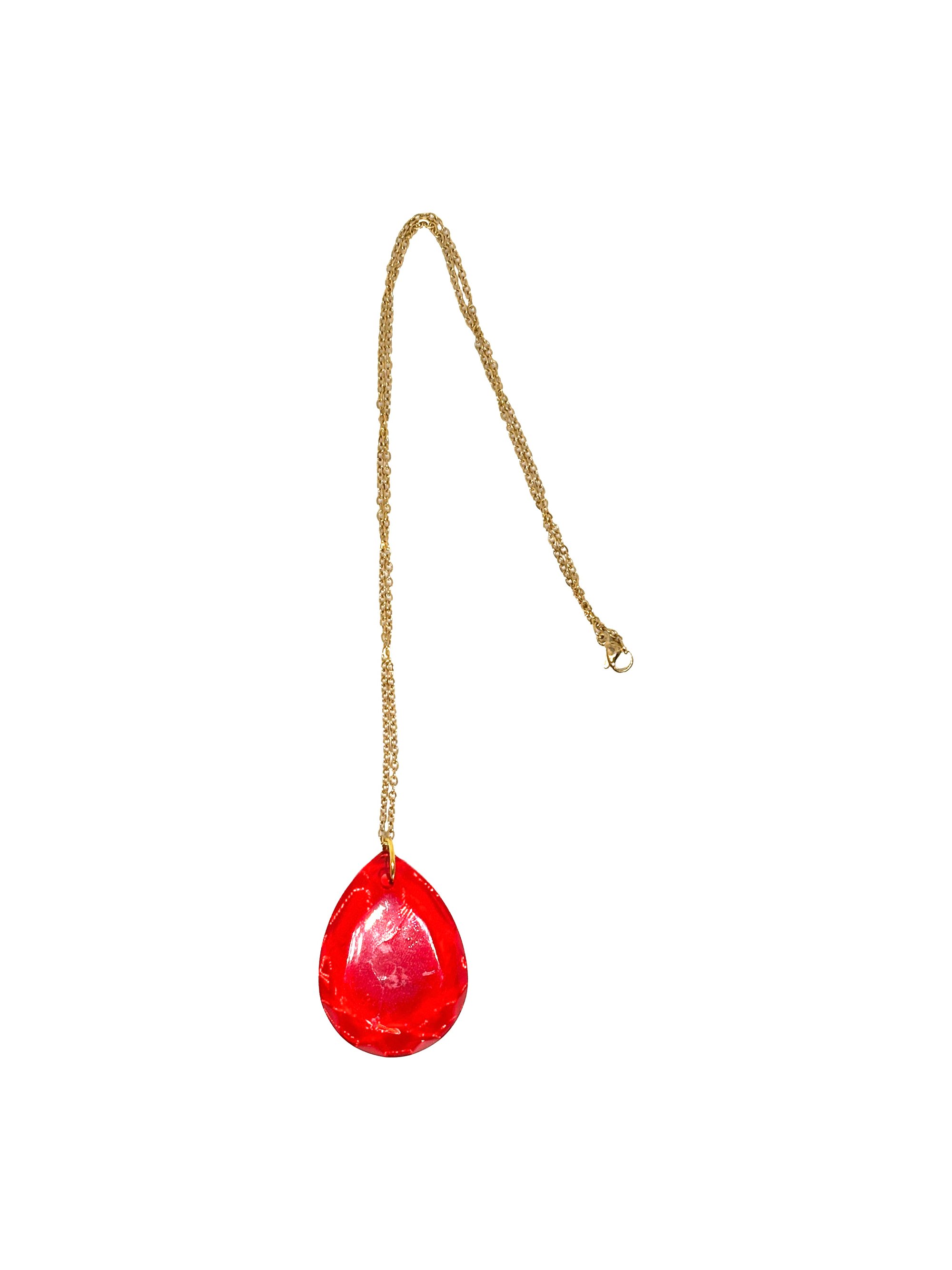 ✶Collier en acier inoxydable fait avec du chrome, tenace + Pendentif fait main avec Resin et colorant rouge=