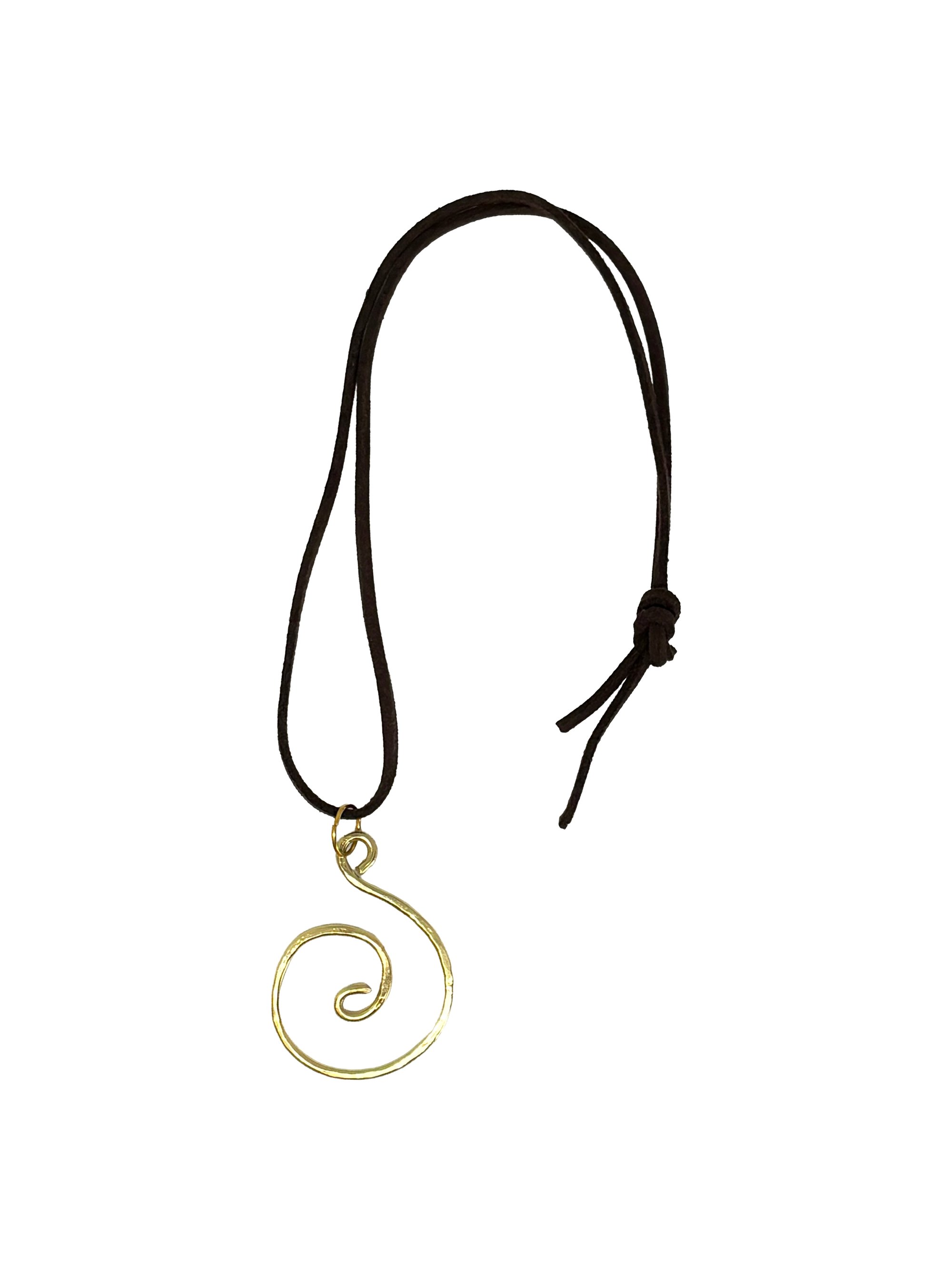 Collier fait mains avec fil en cordon résistant et pendentif spiral.