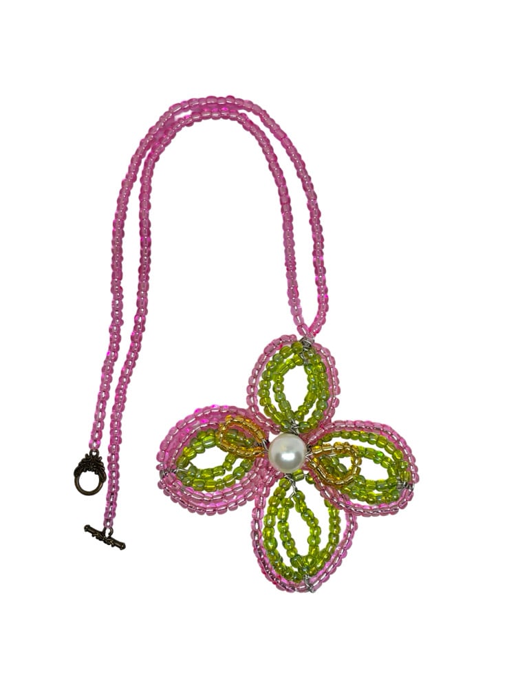 J’ai d’abord façonné chaque pétale avec du fil de cuivre de 1 mm, en superposant plusieurs couches de perles pour leur donner du volume et de la structure. Après avoir assemblé les pétales pour former la fleur, j’ai ajouté une perle centrale pour apporter de la lumière et de l’équilibre.